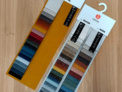7x ramínko + desky s látkami AquaClean. 197 látek pro zakázkový potah židle s dodáním do 2-4 týdnů.