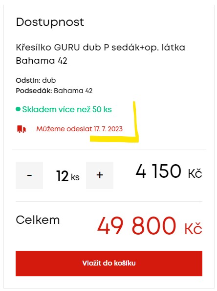Rádi s vám projdeme Vaše požadavky a naše možnosti - řešení se vždy najde. Neexistuje nic, jako minimální odběr, koupit si u nás můžete i jednu židli.